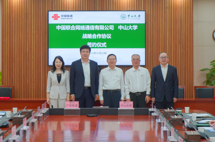 10月30日,中国联通与中山大学在广州举行战略合作签约仪式。中山大学校长高松、中国联通副总经理郝立谦出席签约仪式。中山大学常务副校长杨清华、中国联通政企客户事业群高级副总裁方方代表双方签署战略合作协议。杨清华与广东联通总经理周立松共同签署广东联通与中山大学在产学研合作以及医疗健康领域合作两份意向协议。